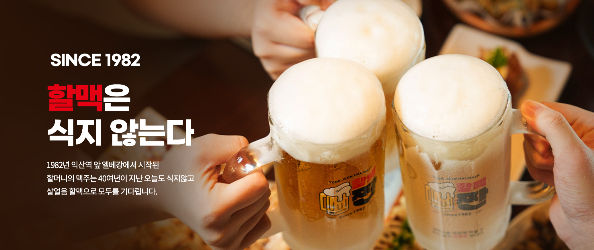 역전할머니 맥주의 시작은 38년 전, 기업에서 시작된 브랜드가 아닌 전북 익산역 앞의 'OB 엘베강'이라는 작은 맥줏집에서 시작되었습니다.