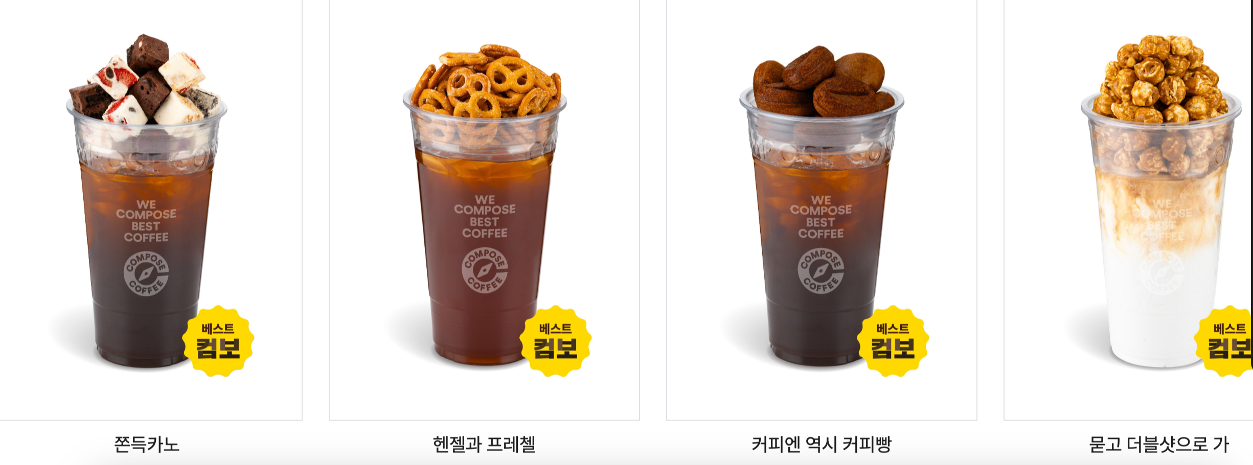 이처럼 메뉴의 다양성을 갖추면서도 가격을 낮게 유지하는 것이 컴포즈커피의 큰 장점이라고 생각합니다.
